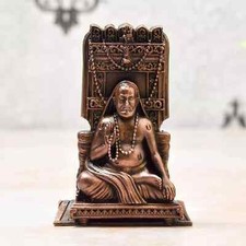 Handmade Copper Ragvendra Swamy Statue Idol Patina Antique Finish Figurine