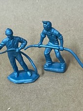 Vintage Blue & White Plastic Fireman With Axe Action Figure Toy Firemen Lot of 2
