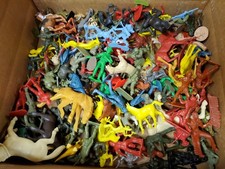 Huge Lot Vintage Plastic Toy Army Men Cowboys Horses Indians Estate Wild West