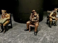 3 Vintage German Toy Lead Soldiers sitting On Chairs. Rare