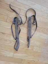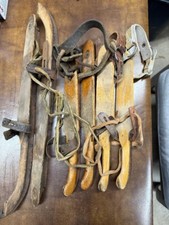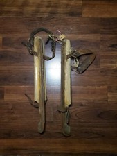 Antique Swiss Wooden Ice Skates- Leather Straps and Curled Toe