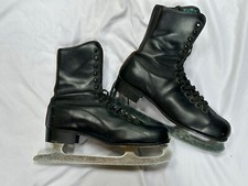vintage ICE SKATES black leather mens TEMPERED SABRE HARDENED See Photos