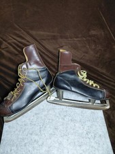 Vintage Men's Brooks Canadian Ice Skates Size 10 Brown/Black Leather Lace-Up