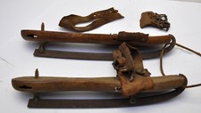 Vintage Wood & Iron Ice Skates Antique Old Snow RARE