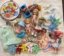 Vtg Junk Drawer Lot OLD TOYS (Dolls Cothing Hangers Doll House Tamborine)