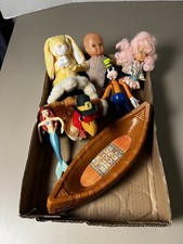 Junk Drawer Lot of Vintage Toys Collectibles Miniatures, IBM Pen Doll Sleep Eyes