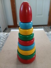 Rare Vintage 1970’s BRIO Wooden Multi-Colored Ring Pyramid Stacking Toy 31720