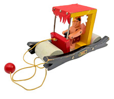 Rare Vintage 1962 Flintstones Brio Wooden Fred Pull Toy Car Sweden