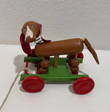 Vintage Brio Wooden Toy Dachshund Weiner Dog Vintage Pull Along Toy 6" Wood Toy