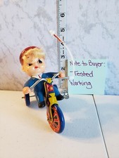 Vintage Wind-Up Made In Japan Tin Boy Ridding Tricycle With Bell Clean