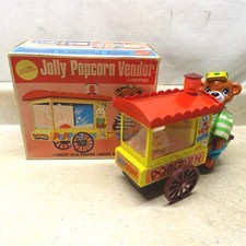 Vintage Tin Jolly Popcorn Vendor Cheery Bear Lighted Cart, Box, Working