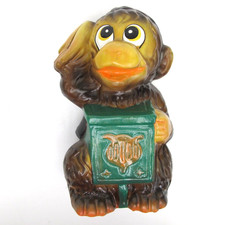 VTG Organ Grinder Monkey Bank w/Stopper Japan Excellent Condition Chalkware 7"T