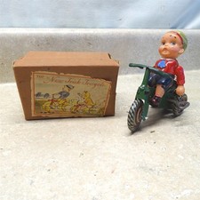 Vintage Japan Tin+ Plastic, The "New Trick Tricycle" Wind-Up Toy + Box
