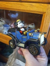 Vintage Crank Wind MASUDAYA Tin Toy 1981' Mickey Mouse Classic Car Made in JAPAN