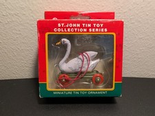 Vintage St. John Tin Toy Collection Series Christmas Ornament - Swan On Wheels