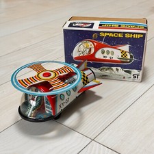 ASAHI Toys Space Ship Tin Vintage Propeller rotates as it moves forward.Japan