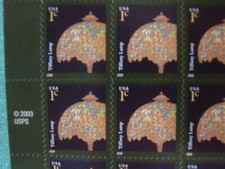 Tiffany Lamp Sheet of 1c Stamps (total 20 on a sheet) - USPS c 2003