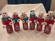 FULL SET of 6 - Athens 2004 Olympics COCA COLA - plush Polar Bear IN A CAN