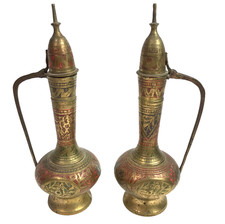 Vintage Ewer Urn Candle Holder Set of 2 India Decorative Ornate Brass patina