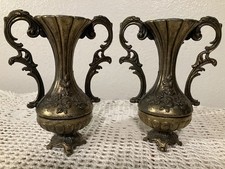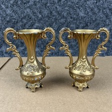 VTG Florentine Mini Brass Metal Vases (Set of 2)Victorian Urns Made Italy Italia
