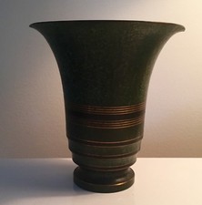 Large Carl Sorensen 1920's Art Deco Bronze Vase Urn Verdigris Patina Signed
