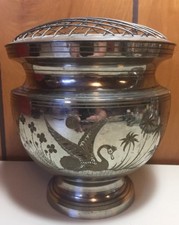 Vintage Silver Plated Metal Urn Vase Footed Bowl Centerpiece 6" Tall