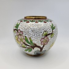 Vintage Enamel Copper Asian Chinoiserie Cloisonné 3.5" Vase Multi-Color Flowers