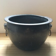 Antique Vintage Asian Solid Heavy Copper Bronze Planter Pot Urn Weathered Patina