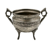 Hammered Silver Tone Coated Brass Urn with Handles FREE SHIP!