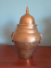 Turkish Vintage Copper Urn/Vase W Lid Necmittin G Antep Karaturan Arts & Crafts
