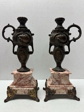 Antique French Spelter Vase Set of 2 Pink Marble Base 16" Urns Cassolettes