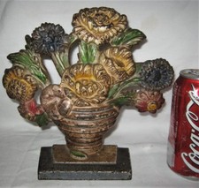ANTIQUE HUBLEY CAST IRON URN MARIGOLD FLOWER FLORAL GARDEN HOME DOOR DOORSTOP US
