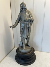 Antique Spelter Cast Metal Figural Cavalier Musketeer Warrior 13” Statue (as is)