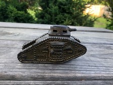 ORIGINAL ANTIQUE 1918 WW1 CAST IRON TOY TANK BANK MILITARY U.S.A. 4.5x2.5x2