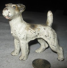 RARE ANTIQUE HUBLEY CAST IRON FOX TERRIER AIREDALE DOG TOY STATUE PAPERWEIGHT