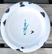 Vtg Kockums Sweden Enamelware Child's Bowl Toy Soldier Image White Blue Rim 7"