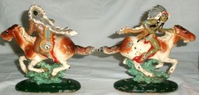 ANTIQUE USA CAST IRON AMERICAN INDIAN ON WAR HORSE TOY STATUE SCULPTURE BOOKEND