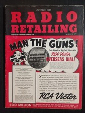 RADIO RETAILING MAGAZINE VINTAGE OCT 1937 RADIOS, GREAT ADS MAN THE GUNS FN+