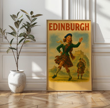 Vintage Edinburgh Scotland Travel Poster, Mid Century Style Wall Art