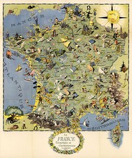 Early Mid-century Pictorial Story map of France Wall Art Poster Vintage History