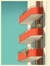 Mid Century Modern Balcony Architecture Illustration Poster 18x24in