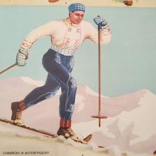 SKI ORIGINAL VINTAGE BULGARIAN POSTER MID-CENTURY FOLK ART 1950s