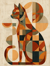 Mid Century Modern Abstract Geometric Cat Art Poster 18x24in