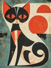 Retro Modern Black Cat Mid Century Art Poster 18x24in