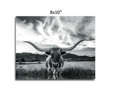 Western Cowboy Sketch Vintage Wall Art Mid Century Decor longhorn cow bw