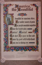 Vintage Mid Century AMERICA the Beautiful Song Lyrics Poster Print 25" x 38"