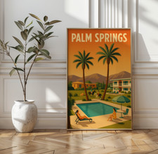 Palm Springs Travel Poster Vintage Style – 1950s Mid-Century Modern Resort Wall