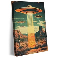 Retro UFO Desert Landscape Canvas Print Wall Art Poster Home Decor Mid Century