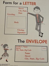 Vintage 1967 School Classroom Poster Mid Century Illustrations Language Arts