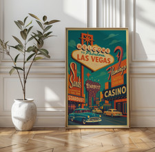 Vintage Style Las Vegas Travel Poster 1950s Retro Wall Art Print, Mid Century